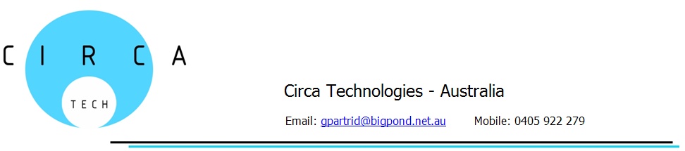 Email: sales@circatechnologies.info or gpartrid@bigpond.net.au